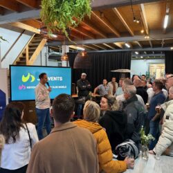 Met ruim 100 aanwezigen was het Walking Dinner – met bezoeken aan Overijssel Beton en JA Events – een groot succes vol inspiratie en gezelligheid.